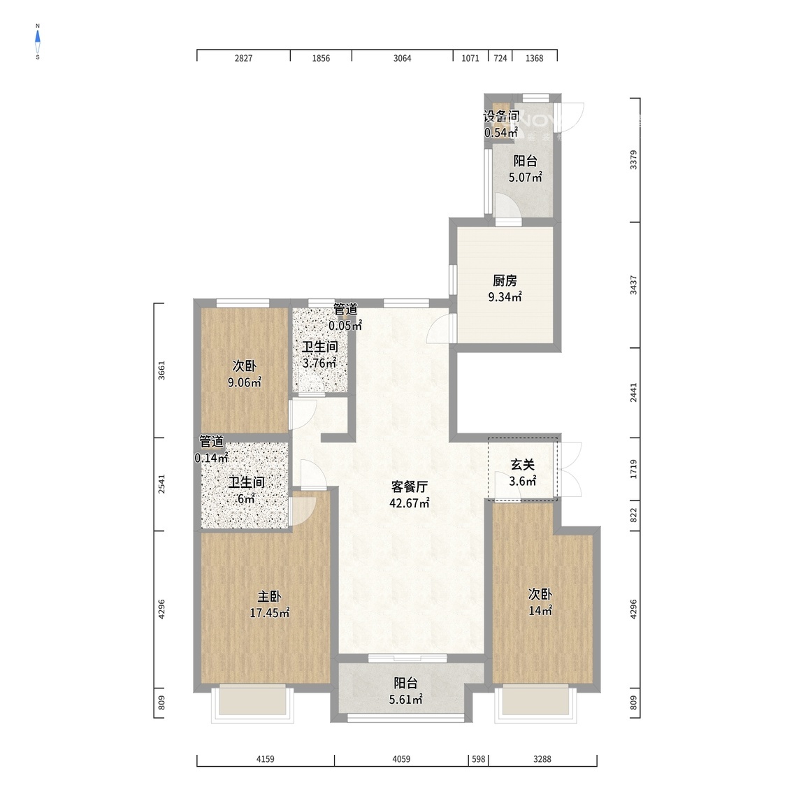 小区:万达华府 面积:140㎡ 户型:三居 风格:简欧风格