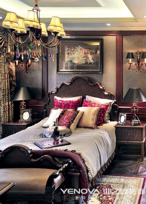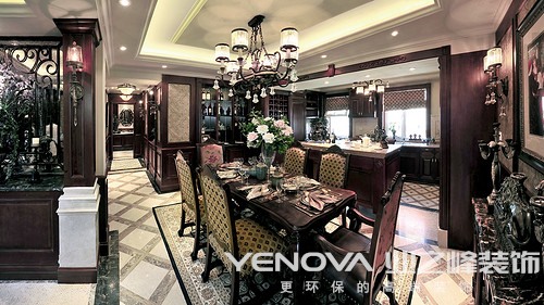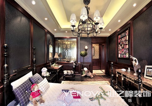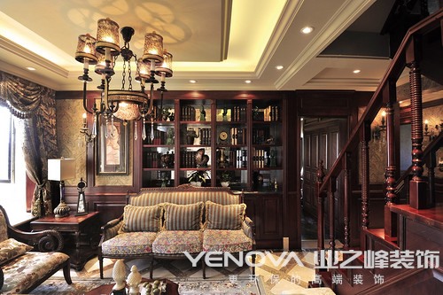 255平米的别墅以厚重的新古典风格为主,从空间结构和工艺上都表现出了古典造型讲究的巴洛克元素,再加上材质上本身的肌理与色彩,让整个空间透着尊贵;拼花菱形地砖、石材壁炉及新古典家具填补了别墅多变的空间结构,让生活的复古气息更为浓烈;锥形木吊顶的几何立体与书柜结合,无形中营造出文艺气息;而卧室的设计又让主人生活得更有质感,让你在别墅中享受不一样的华贵