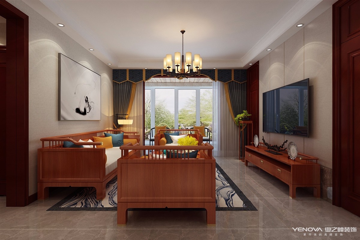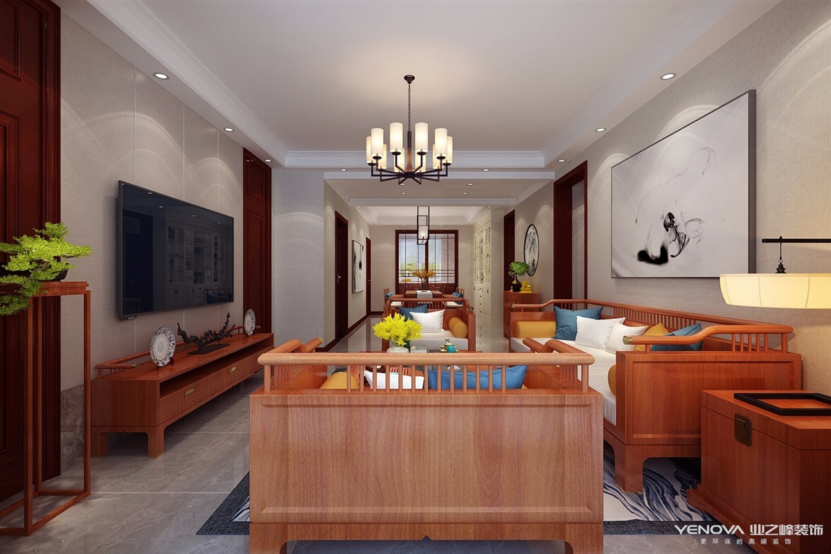 114㎡三居新中式风格绿地隆悦公馆