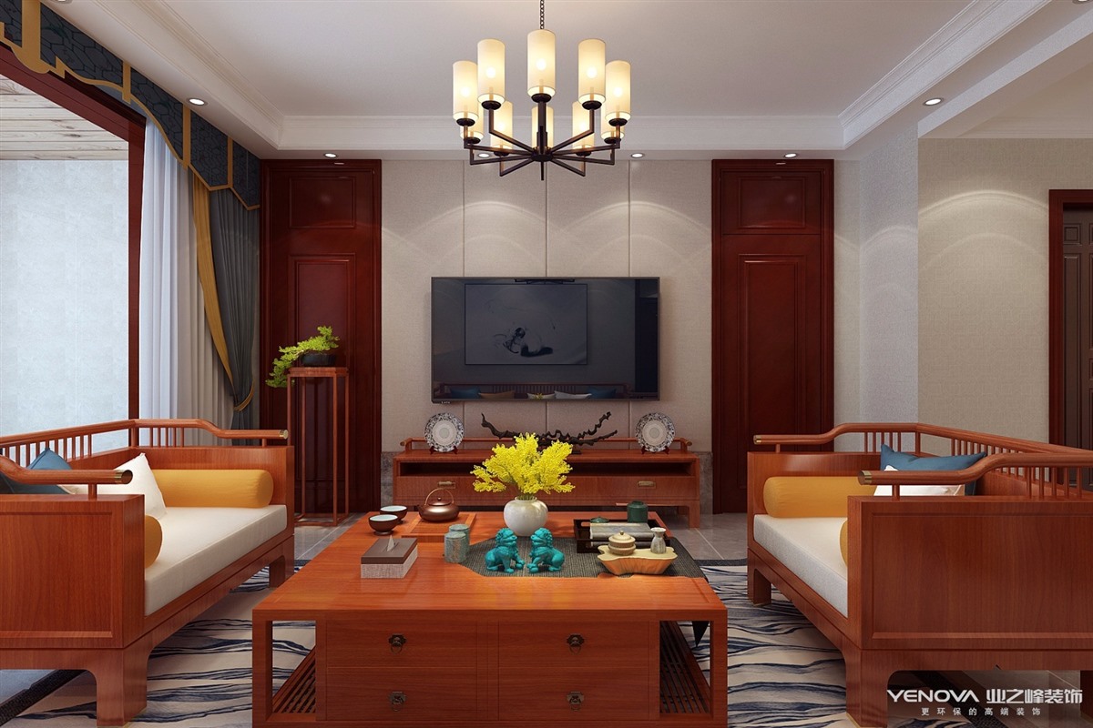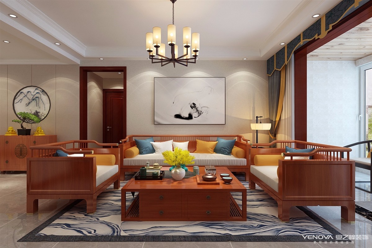 小区:绿地隆悦公馆 面积:114㎡ 户型:三居 风格:新中式风格