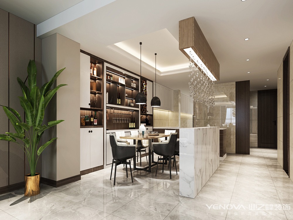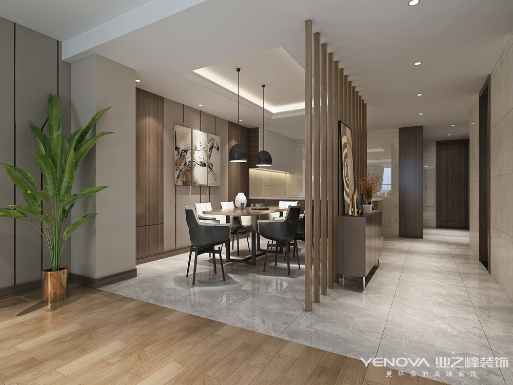 本案的设计重点是会客空间与门厅、餐厅以及过道空间互通与交流,从设计手法上采用了从墙面上成品木线造型分隔与地面材质衔接呼应,以及顶面的空间的虚拟划分,达到各功能空间融会贯通的目的。简洁、现代的极少主义在本案中得到了淋漓尽致的体先。