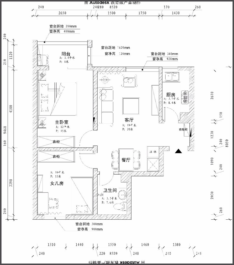 小区:文华园 面积:110㎡ 户型:三居 风格:现代简约风格