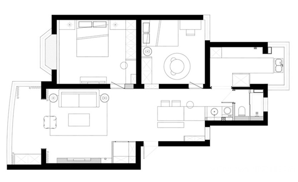 将中式水墨之境转化为空间的氛围意境,充分体现空间之间、空间与人之间沟通,起居室与楼下餐厨空间处理即如此,细节上加以现代设计手法与细腻材质表现,让起居室造就出独特的新东方艺术空间。