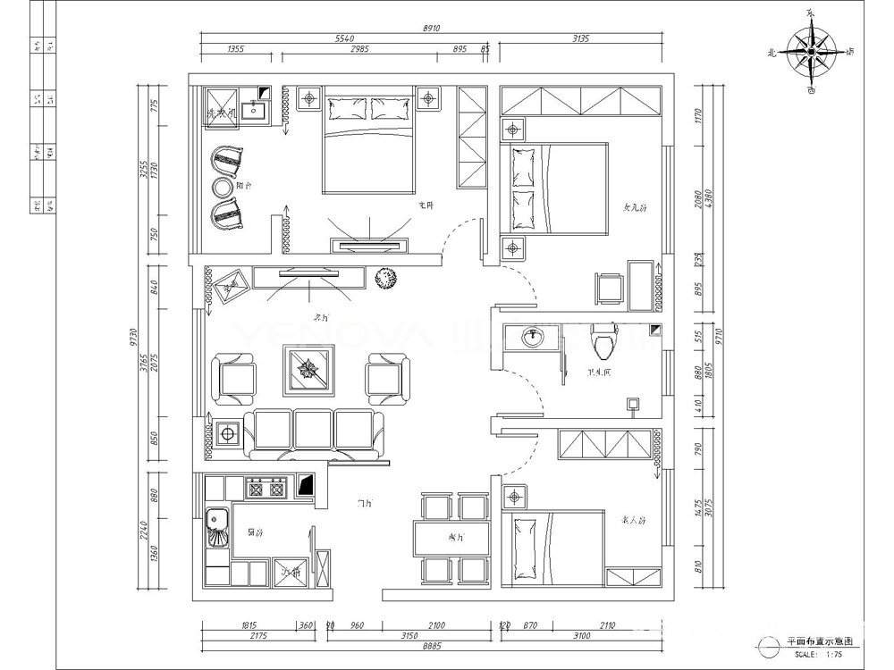小区:兵工新城 面积:120㎡ 户型:三居 风格:现代简约风格