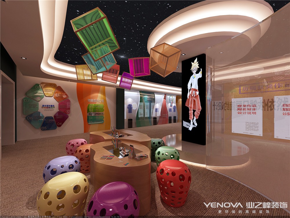 色彩的编织正如空间以表达其与使用者的关系来回应建筑本质,设计以多样探索赋予空间更大的想象力,如同音乐旋律,它也有高低起伏的变化。以充满科技感的设计语言,让空间与时间相互交融。在这次的空间设计中,加入了六种不同的旋律,未来/神秘/科技/专业/轻松/温馨。如同变奏曲,六种旋律的交替转换与融合,编织出属于这个空间的独有乐章,藉由此,延伸出一段关于设计与体验的旅程。