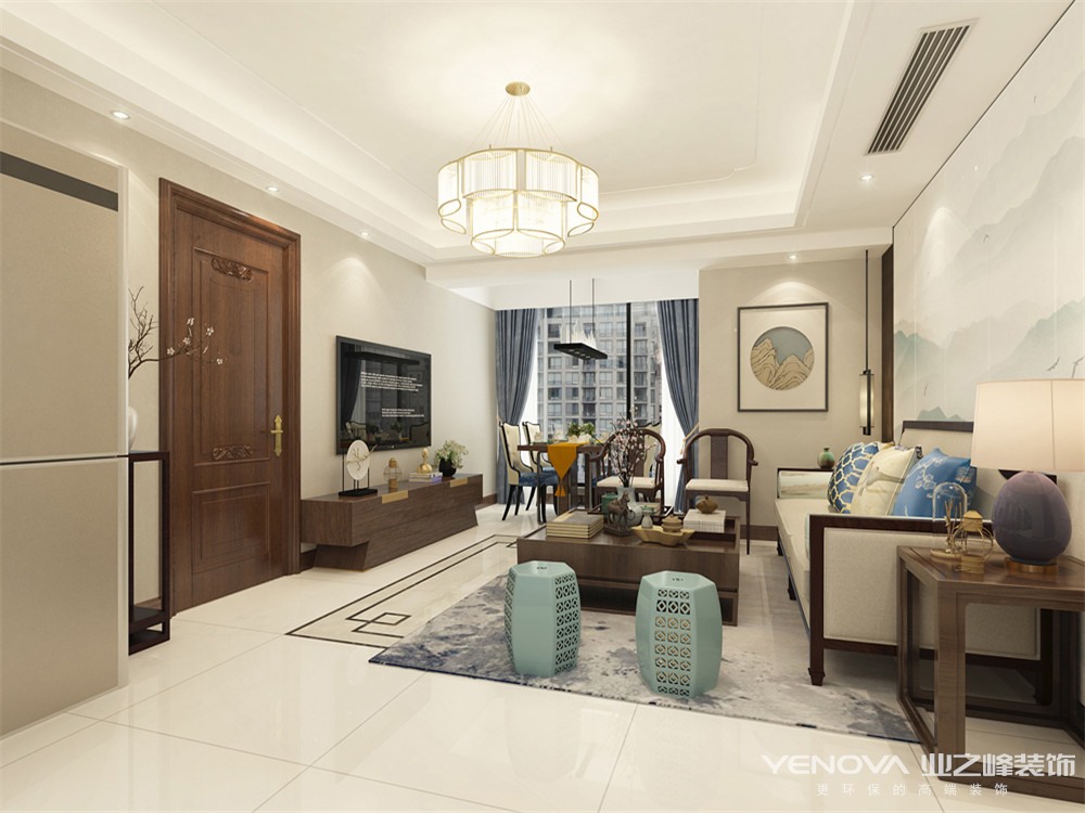 小区:都市果岭 面积:100㎡ 户型:三居 风格:新中式风格