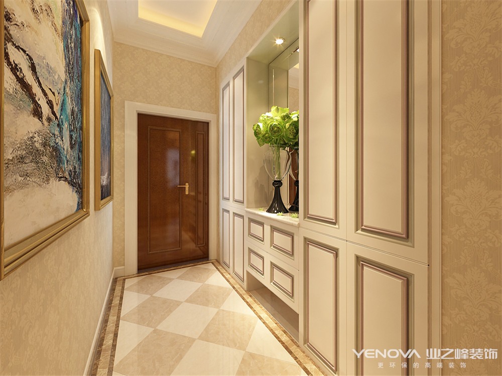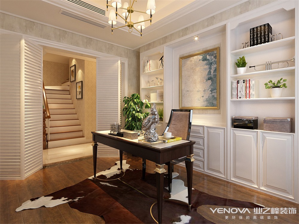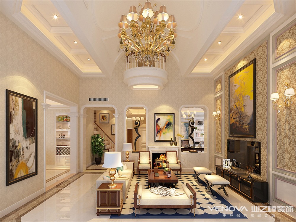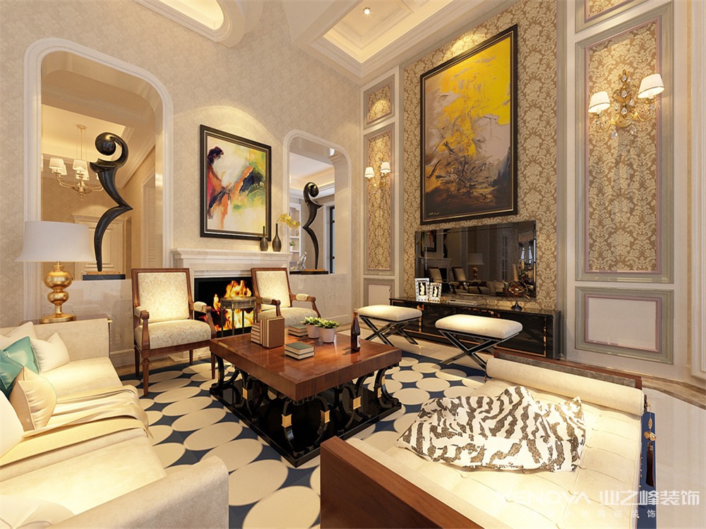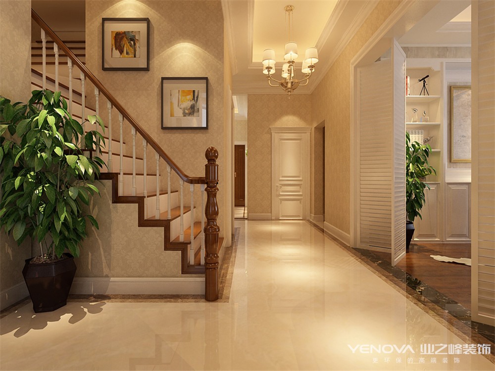 本案风格以欧式风格浅色调为主,墙面大面积采用浅米黄色壁纸,白色护墙板,装饰木质门套帽头凹凸层次造型很好的表现了客户心目中想要的低调的奢华的欧式感觉。空间布局上讲究轴线的对称,艺术楼梯细节工艺考究,软装上搭配时尚的壁纸、布艺、华丽的灯饰、窗帘的搭配点缀下,让整个空间看起来温馨又不缺乏生活情调。