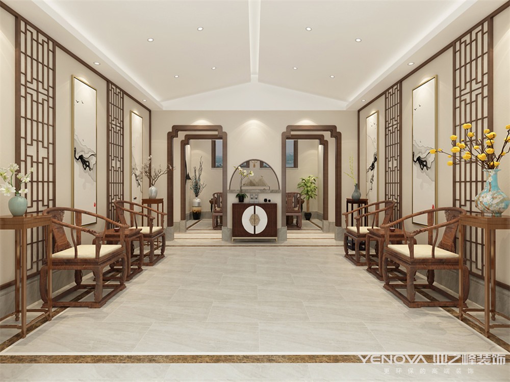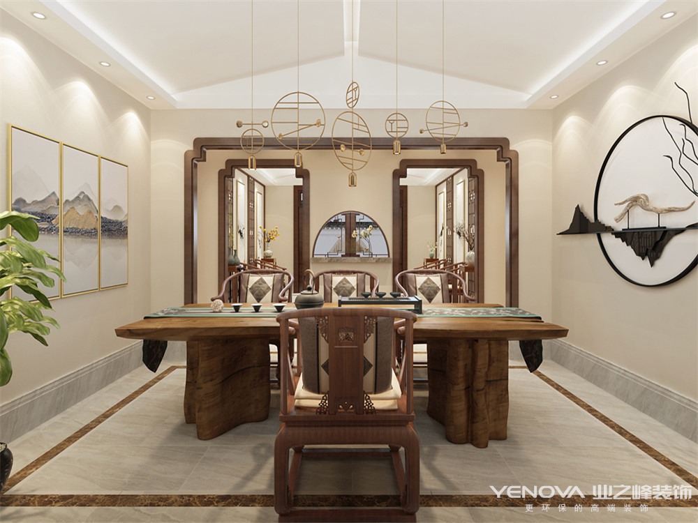 淡之喧嚣,坐拥宁静;浓淡相宜,清风自来 。烹一壶茶,发现生活听见自己。将传统与现代文化交融作为手法,去除传统中式的繁复细节,保留并升华神韵和气质,使之呈现时尚现代感,氛围中又低调显露新中式的魅力。中国窗花元素的镂空雕刻木制作,半通透的隔断对空间进行有层次的遮挡,制作了陌生而有趣的气氛,同时保持区块之间的朦胧联系,为空间增添几分灵性。