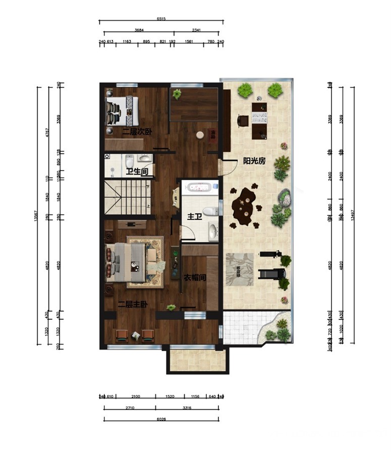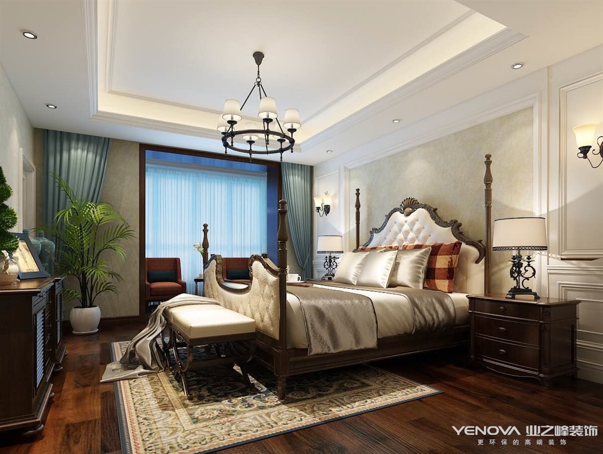 【二层主卧】主卧室通过新建墙体,增加衣帽间的功能,使主卧室功能更完善,让主人在最大的便利下享受来自欧式的浪漫;整体色调选以沉稳的颜色,营造出安详沉静的睡眠氛围;家具选用典型的深色欧式家具,仿佛一个有故事的老者叙述着欧式的过往,感受欧式的厚重与底蕴,在优雅浪漫中心游欧洲。