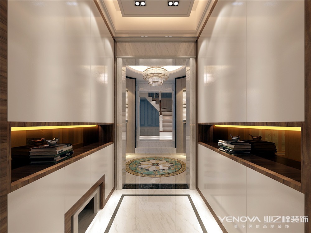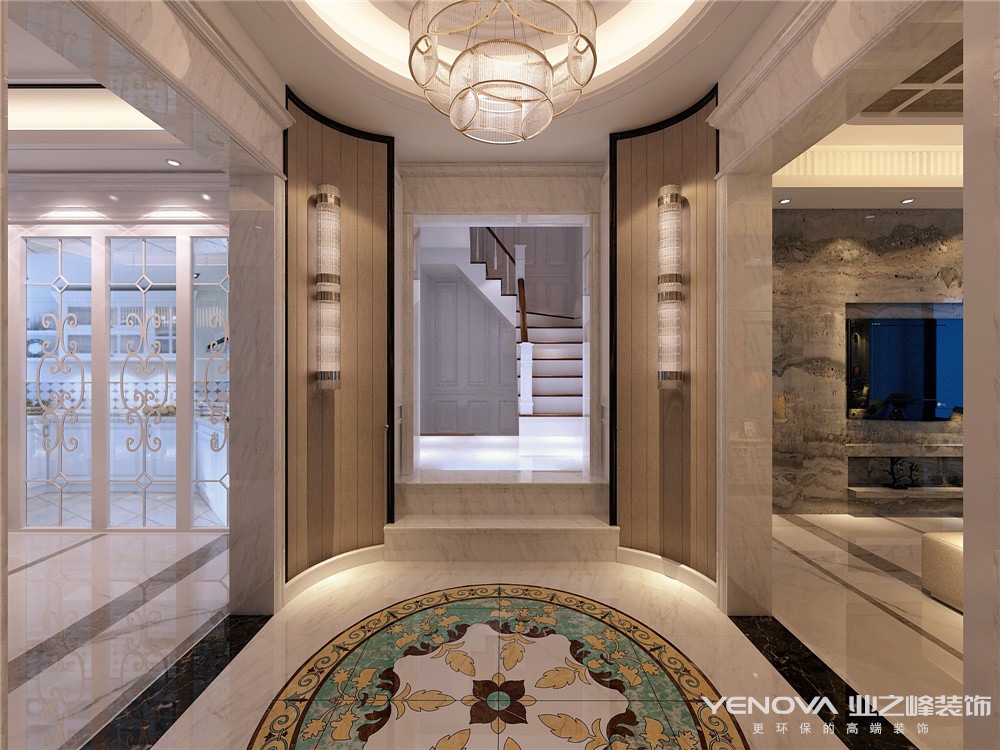 本案突出文化主题,希望通过设计来凸显欧式的纯然风情及深厚的文化底蕴,体现出文化元素在家装设计中的实用与精致。 选材方面,除了欧式惯用的白色材质外,还用了石材、玻璃等现代材料,大大提升了原质感的对比效果,增添了几分现代感。与此同时,本案配搭了暖色的灯光,打破了传统布局沉闷的格调,使得空间的层次感、穿透性大大增强。 后期软装方面,选用的配搭灯具、家具等也很考究,既有西式元素,又具有强烈的时代感元素。例如天花水晶灯的闪烁效果,配搭上欧式家具、水晶灯、挂画、饰品等完美组合,形成极具品位的装饰效果,将奢华的欧式风情演绎得淋漓尽致。