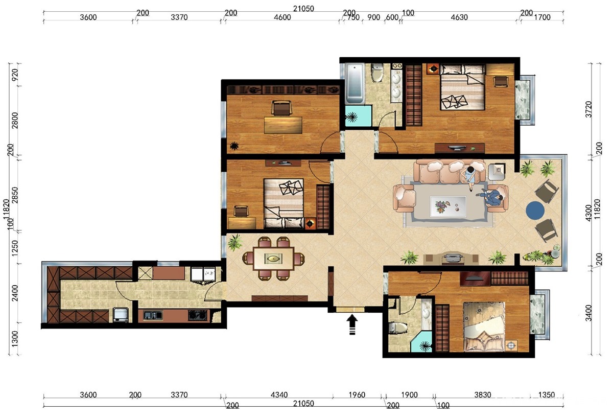 本案的业主是一对军人夫妻,都是50岁,和一个老人同住,儿子和儿媳偶尔过来小住。对装修的要求是宽大舒适,喜欢深色的家具。经过和设计师的沟通,最后排除的类似的中式,确定了美式风格。