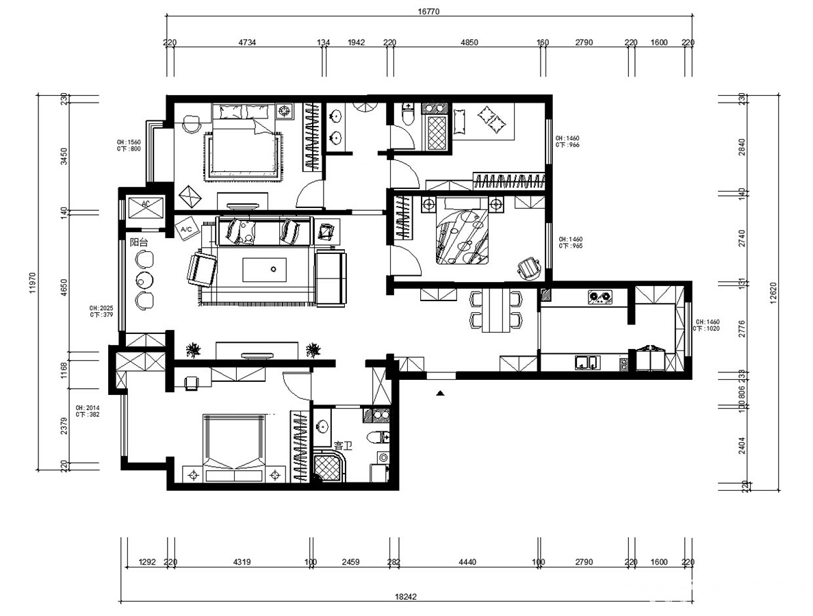 小区:其他小区 面积:135㎡ 户型:四居 风格:美式风格