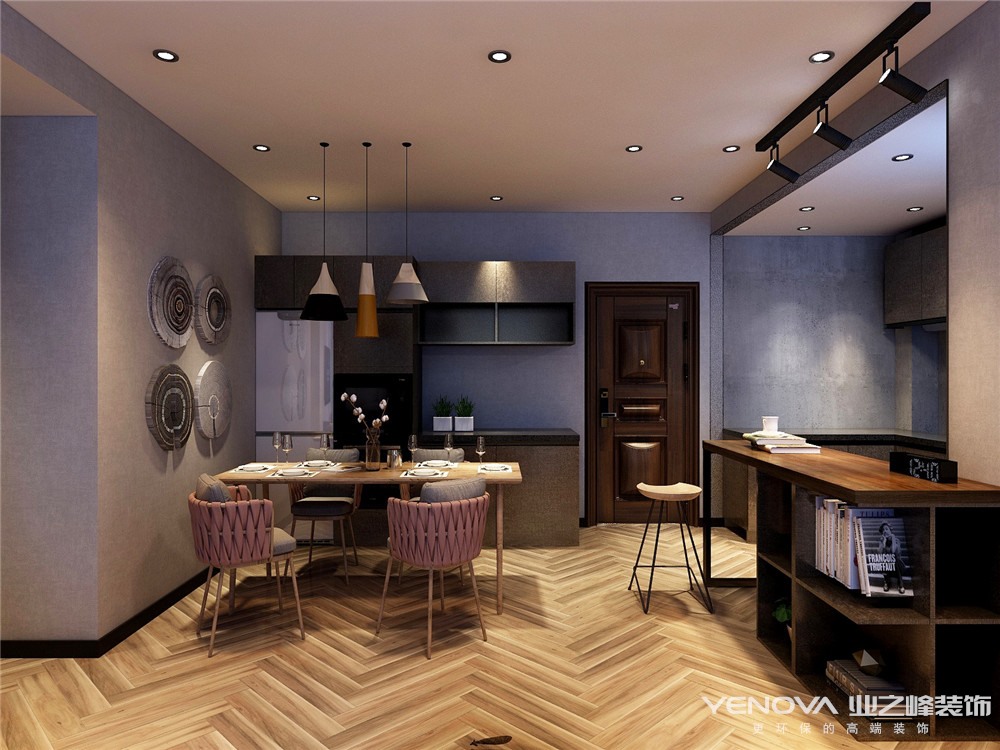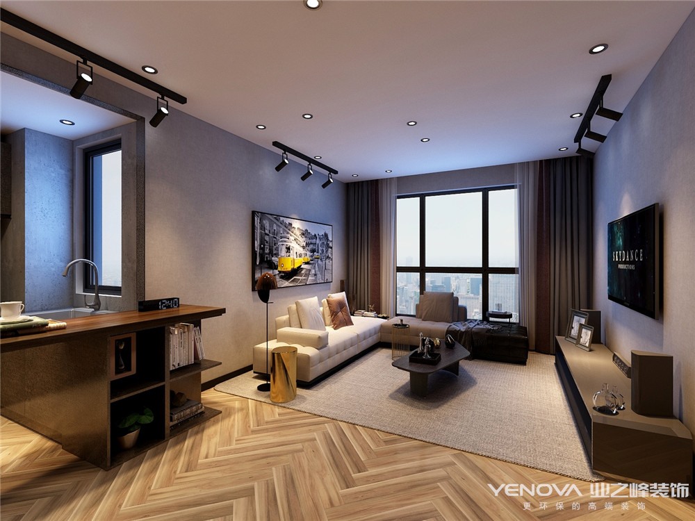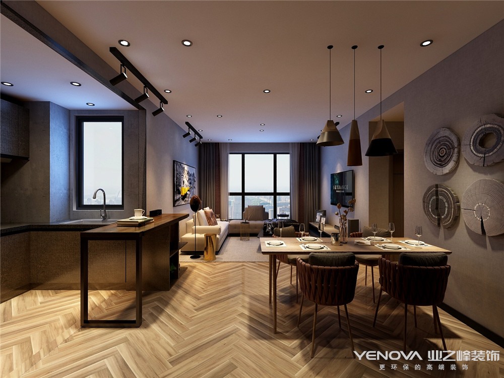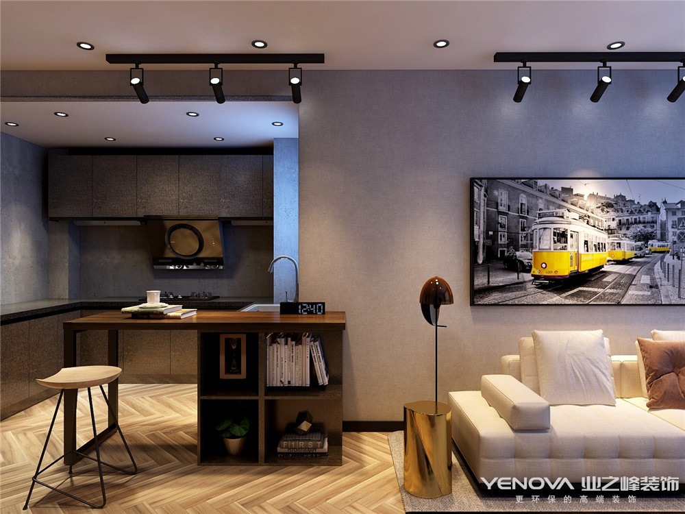 本案的主题为现代工业风格,简约俐落的质材运用与大方的格局布置,是工业风定调的设计中,不可或缺的重要元素。在案例中,设计师以艺术水泥墙漆及木材质来营造大气、自然美学氛围,用灯光照明设计制造居室的氛围感。地面鱼