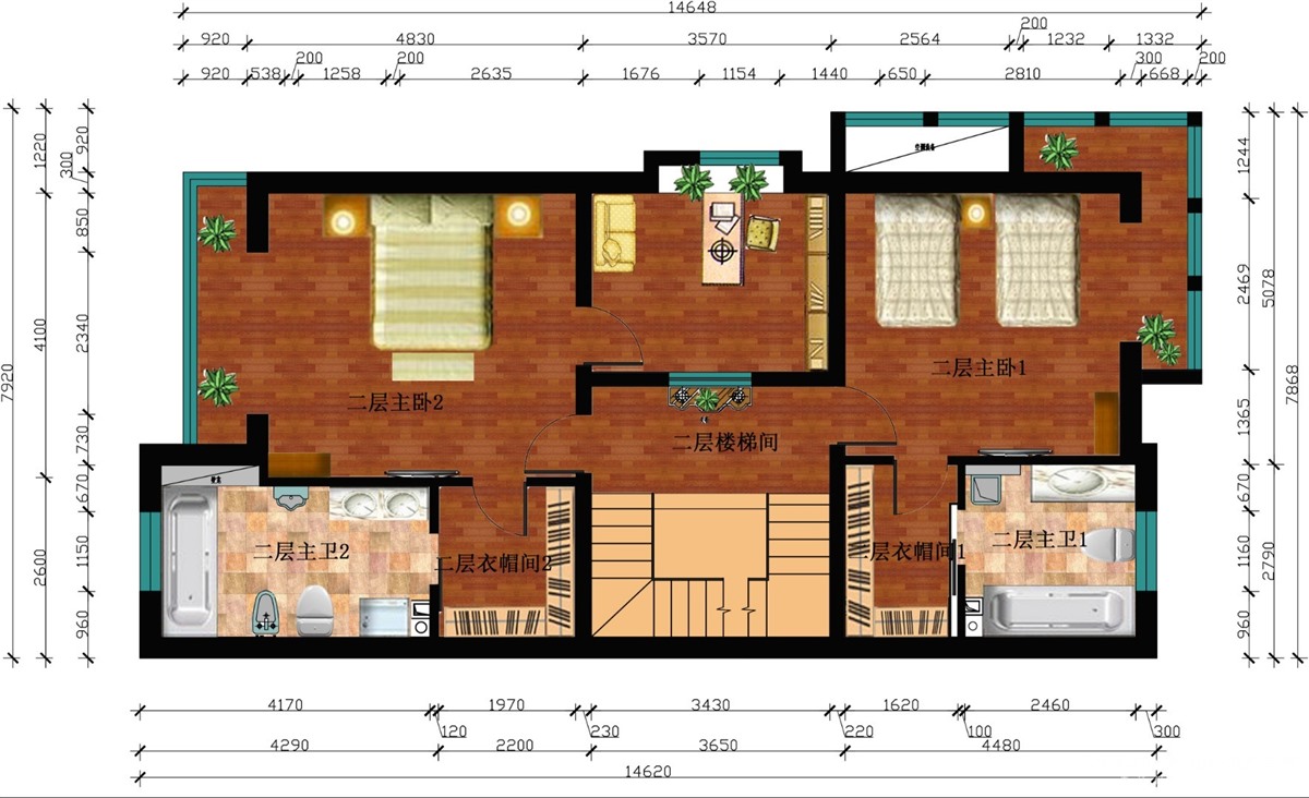 二层的空间主要是卧室,二层主卧在结构上将原来的卫生间的开在了衣帽间里,书房的空间将原来的敞开空间换成普通的单开门。同时改变书房开门的位置,设置在主卧里,增加主卧和书房的私密空间,方便业主的使用,同时书房对过道设置花格,不至于上楼感觉到视觉的拥堵。二层还设置了老人房,方便对老人的照顾。