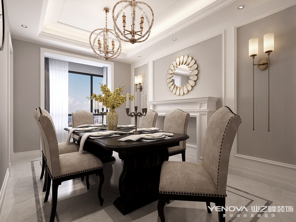 本案的设计风格为美式风格,装饰韵味既含有古典美式的华贵又有现代风格的简约,运用清亮的色彩,从硬装到软装追求空间的干净与利落,不做复杂的空间布局,让室内充满温馨和舒适的感觉,带给人休闲式的浪漫生活。清新的布艺沙发,流露出一股浓浓的美洲风情。客厅通透的玄关设计,玄关以朴实的木质收纳为主,门后的衣钩、换鞋凳、玄关柜,走廊的隔断,特别紧凑和质朴。卧室布置较为温馨,作为主人的私密空间,主要以功能性和实用舒适为考虑的重点,用温馨柔软的成套布艺来装点,同时在软装和用色上非常统一。餐厅作为用餐区,保证满足家人用餐之时,古朴的实木餐桌,椅子与桌子边缘一般都有一定的雕刻和弧度,典型的美式风格。而吊顶选用金色吊灯做装饰,还选用壁灯做点缀,装饰性更强。