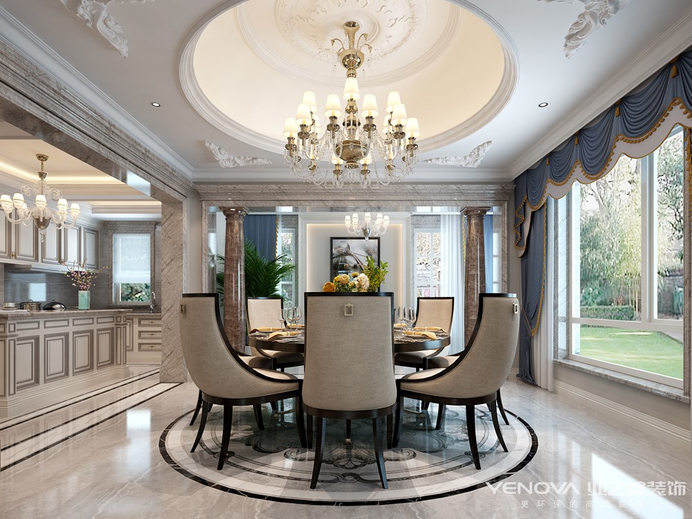 高雅而和谐是新古典风格主题,把高雅的古典情趣和潇洒而精巧的现代手法融为一体,展现鲜明的时代气息的同时复活了古典主义的精魂。从简单到繁杂、从整体到局部,精雕细琢,镶花刻金都给人一丝不苟的印象。一方面保留了材质、色彩的大致风格,仍然可以很强烈地感受传统的历史痕迹与浑厚的文化底蕴,同时又摒弃了过于复杂的肌理和装饰,简化了线条。 览尽所有设计思想、所有设计风格,无外乎是对生活的一种态度而已。重视细节设计的完整性,用利落的线条、完美的材质和高档的家具赋予空间生命力,用极致的关怀去满足业主的真正需求,营造出人与空间共同生长的家居空间。以简洁的线条勾勒空间,令空间的框架简练、明朗。客厅设计开阔、大气,空间的表现形式和层次丰富。灵活的材质运用和完美的视觉比例适当辅助,精彩呈现低调奢华之外的名家向度。整个空间的设计都透露出一种低调奢华的高品味的气息。简洁的柱体再行略显庄重,家居的整体韵调悠然而出。