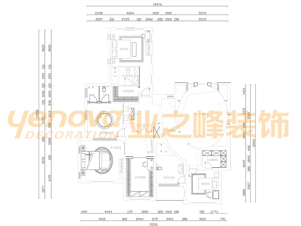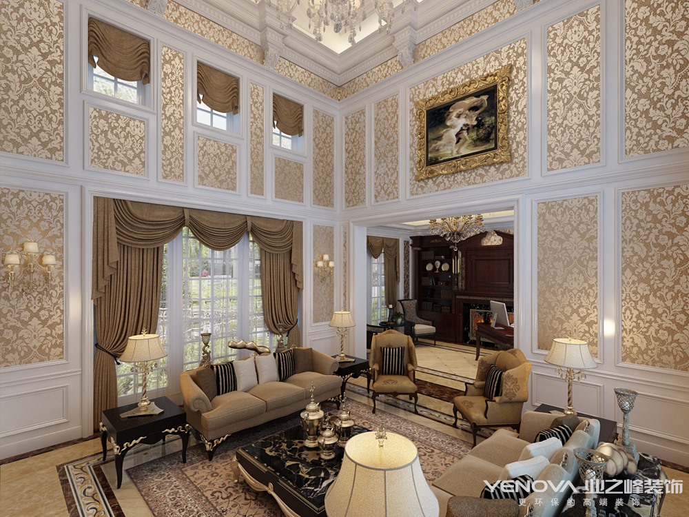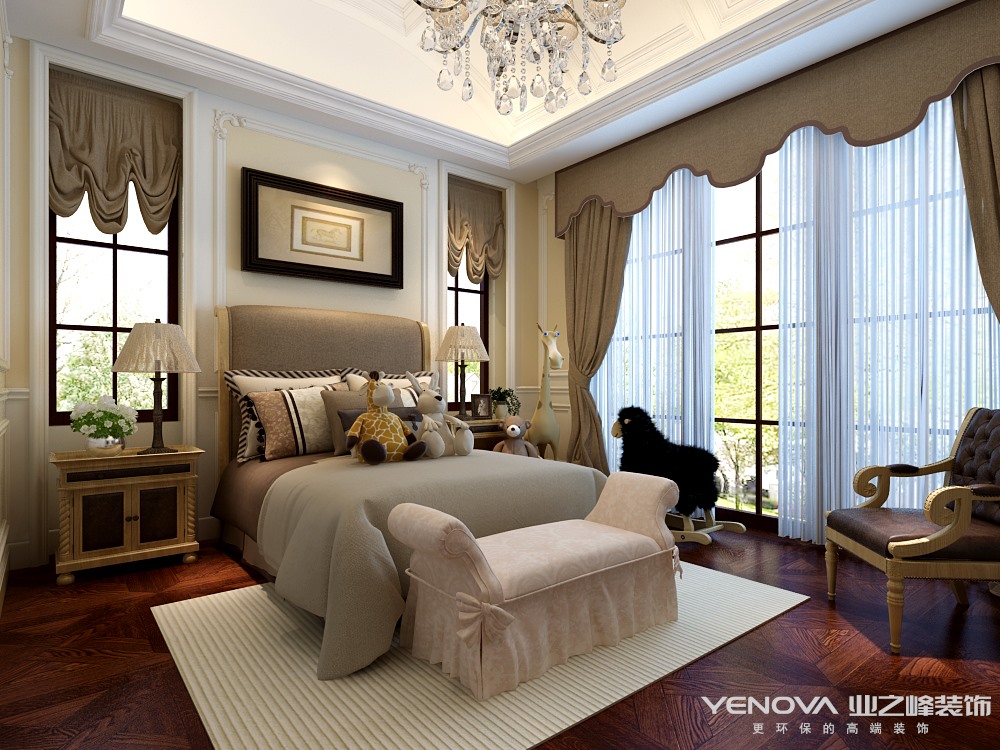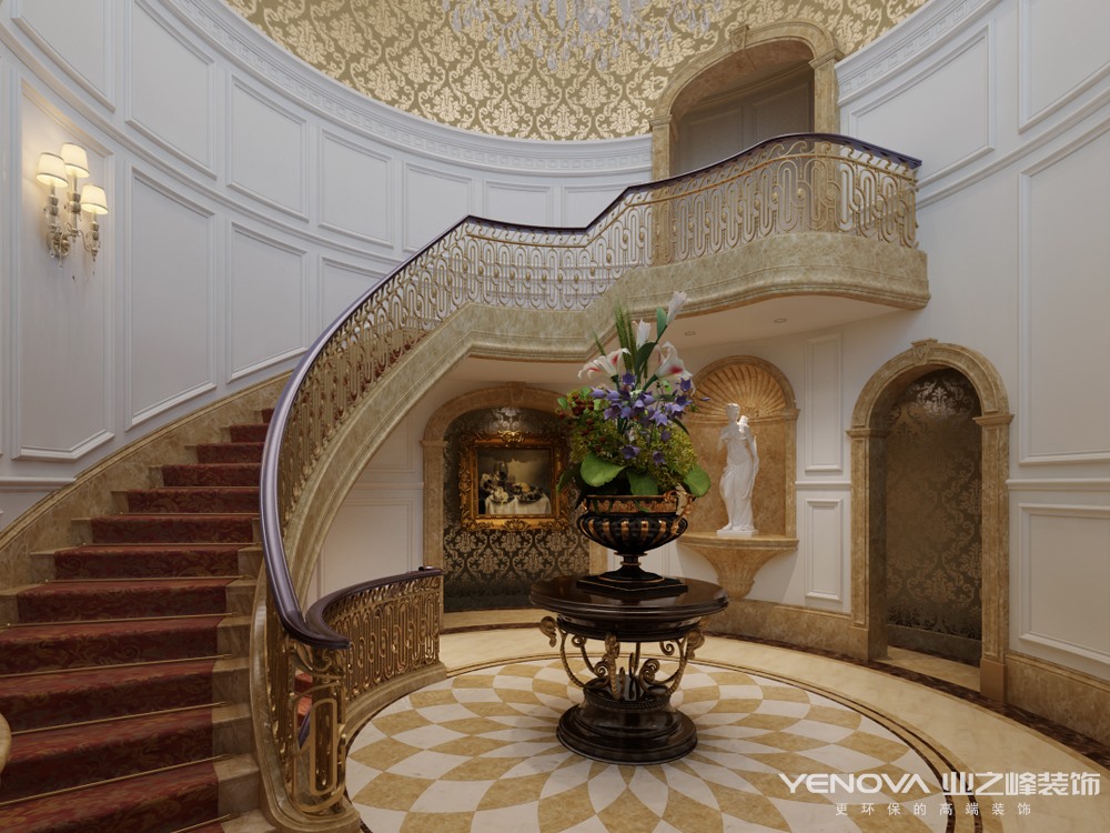 本案的设计风格为新古典风格,新古典主义的设计风格其实是经过改良的古典主义风格,以复古、奢华为主题。新古典风格从简单到繁杂、从整体到局部,精雕细琢,镶花刻金都给人一丝不苟的印象。一方面保留了材质、色彩的大致风格,仍然可以很强烈地感受传统的历史痕迹与浑厚的文化底蕴,同时又摒弃了过于复杂的肌理和装饰,简化了线条。在注重装饰效果的同时,用现代的手法和材质还原古典气质,新古典具备了古典与现代的双重审美效果,完美的结合也让人们在享受物质文明的同时得到了精神上的慰藉。讲求风格,在造型设计的不是仿古,也不是复古而是追求神似。而是用简化的手法、现代的材料和加工技术去追求传统式样的大致轮廓特点。注重装饰效果,用室内陈设品来增强历史文脉特色。