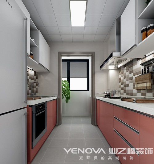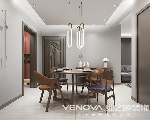 以鹰灰和陶俑红色调为主线,融合在每个空间内。客厅使用的贴近鹰灰的深灰色墙漆,让空间充满神秘感,厚实感,和白色墙面形成鲜明对比。门厅、厨房、洗手间均使用陶俑红的木作结合高光白和鹰灰进行搭配,充满活力和朝气。主卧室的橘红色床体,魅力无限,尽显高贵气质。暖黄色的儿童房空间,活泼可爱,温暖阳光。
