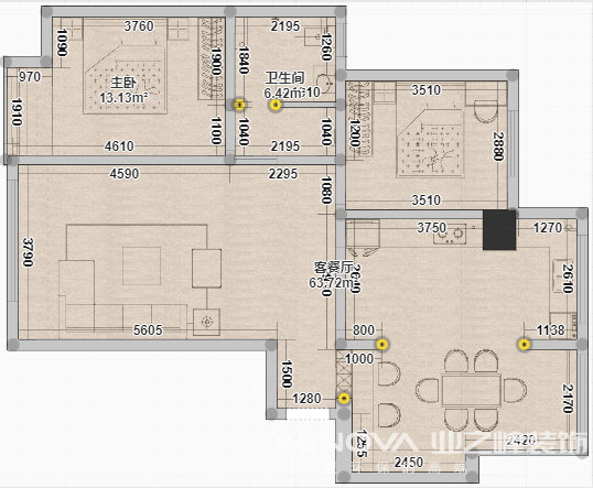 设计,突出大气且不失时尚之感。以简洁明快的设计风格为主调,全面考虑,在总体布局方面,尽量满足三口之家生活上的需求,主要装修材料为理石为装饰饰面,以金属条