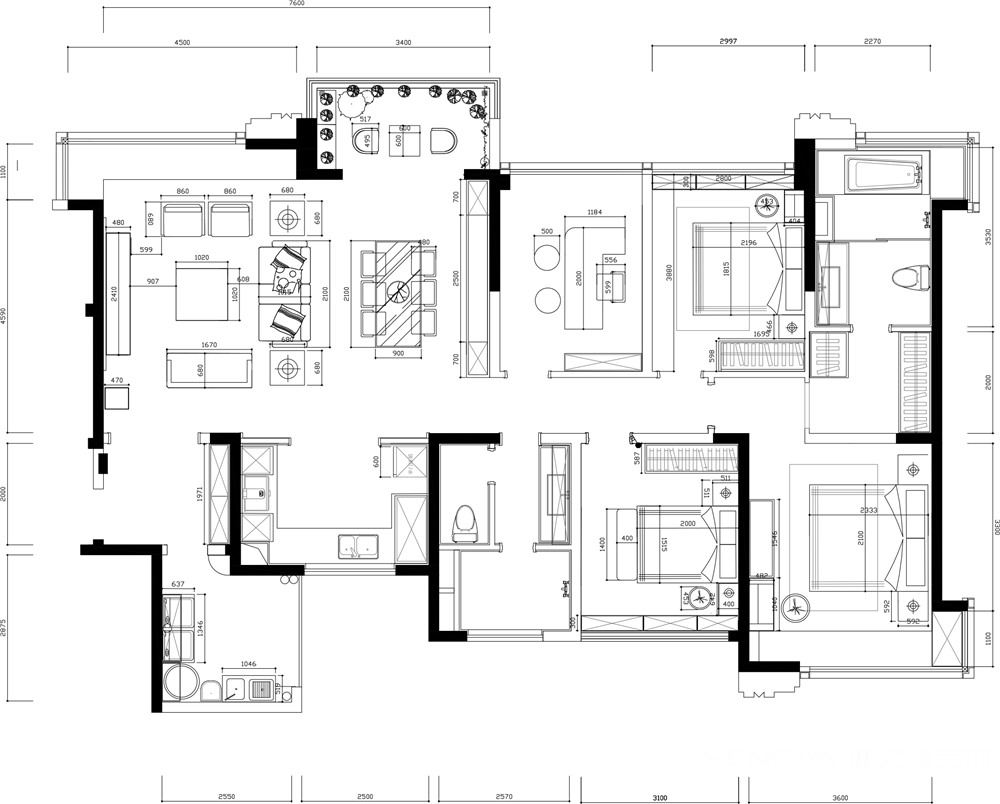 小区:万科公园五号 面积:170㎡ 户型:四居 风格:现代简约风格