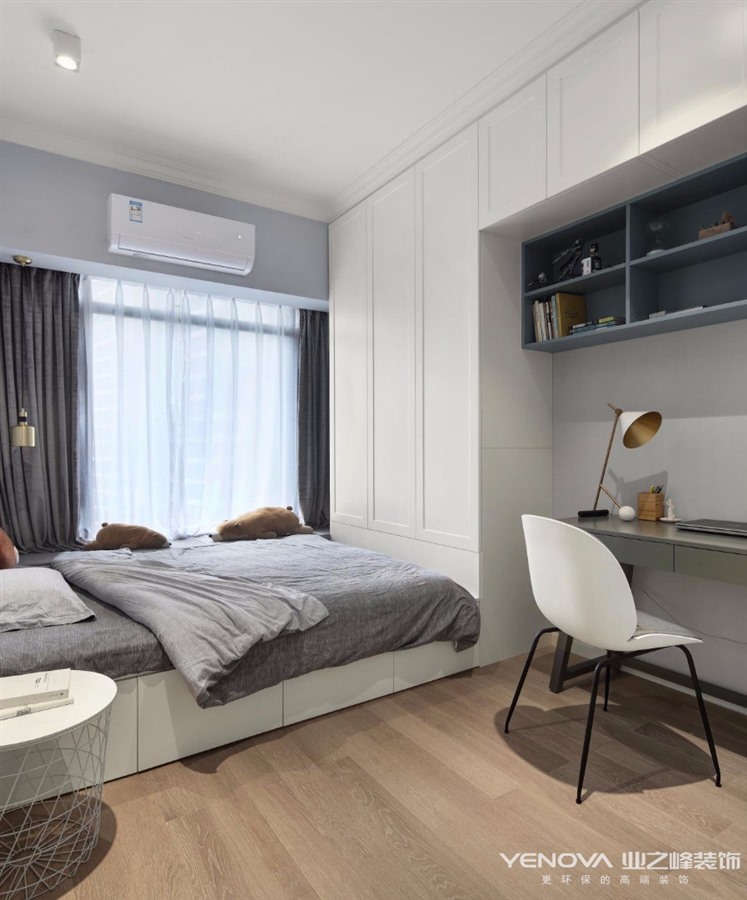 背景墙选用紫色软包,浪漫温馨,挂画、造型别致的灯具、家具让卧室的欧式感十足,又不显得过于华丽,高雅,符合睡眠的需求