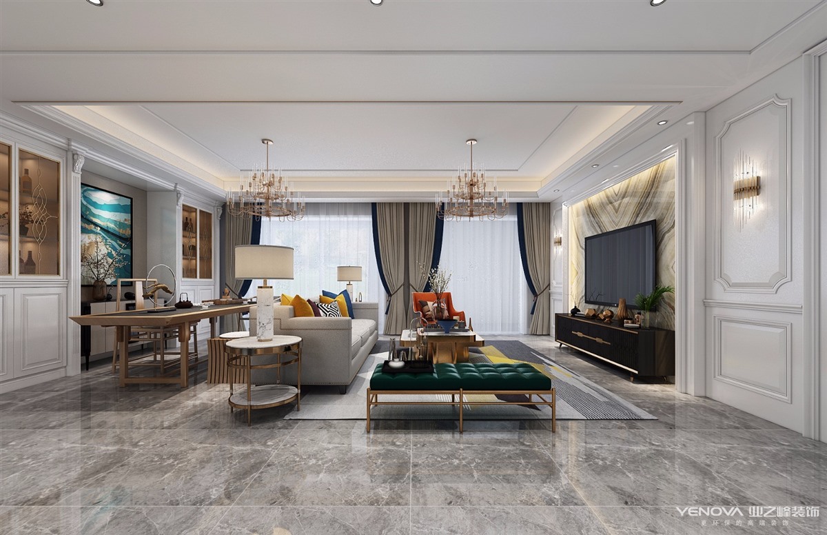 案例名称 象湖壹号140平米简欧效果图 小区名称:融创美盛象湖壹号 施工单位郑州业之峰装饰 设计说明:形散神聚是新古典风格的主要特点.在注重装饰效果的同时,用现代的手法 和材质还原古典气质,新古典风格具备了古典与现代的双重审美效果,完美的结 合也让人们在享受物质文明的同时得到了精神上的慰藉.不可否认,新古典是融 合风格的典型代表,注重线条的搭配以及线条与线条的比例关系.一套好的新古典风格的家居作品,更多地取决于配线和材质的选择。
