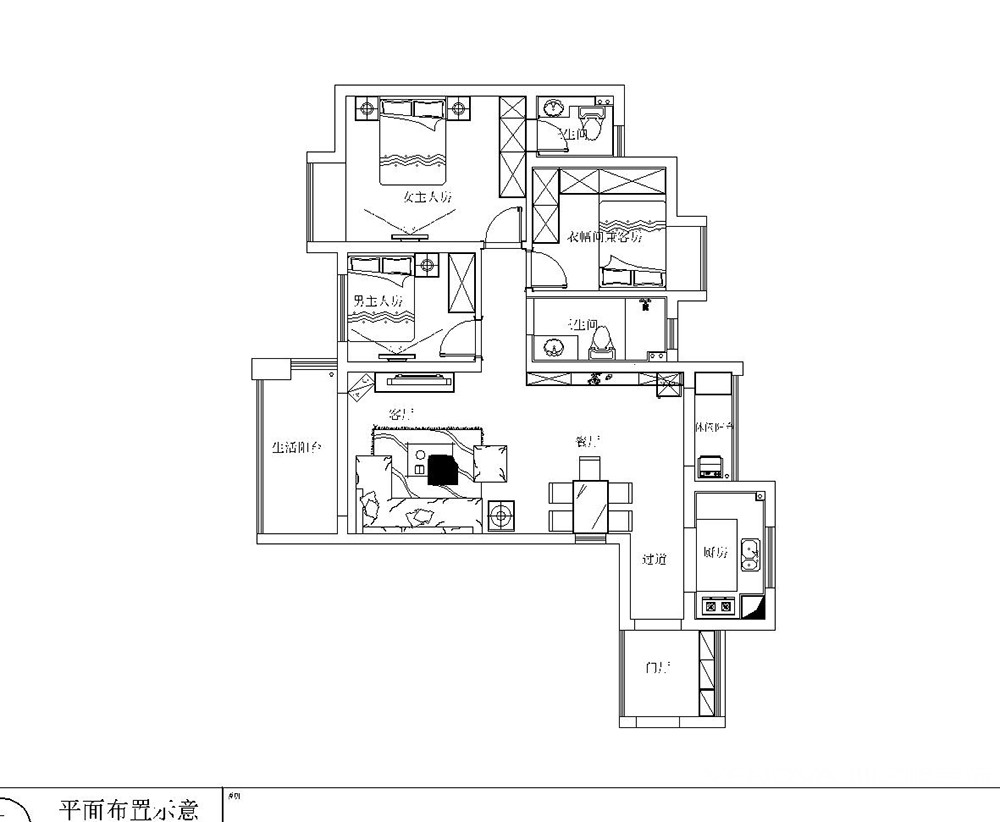 咨询电话:0791-86296016 客户是一对年长老夫妻,户型变动不想太大,客户要求整个房子的隔音要好,不要弄的太复杂,房子是两人坐养老用。在设计过程中要求空间大。小孩在国外,所以在居住人口上就是两夫妻,不需要考虑小孩起居空间。夫妻两个要求分房起居。在格局上是把主卧给了女主人,南面次卧变为男主人的起居。