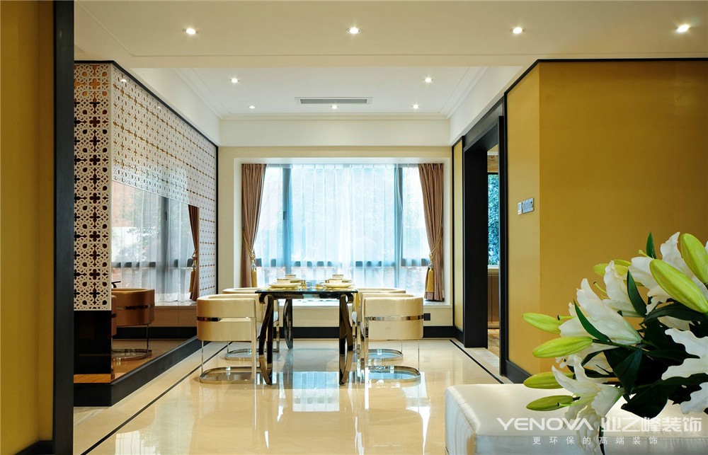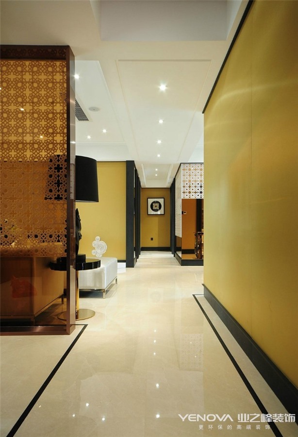 室内整体风格为现代风格,整体以黄色为主色调,运用大量的咖色印花玻璃装饰。业主是一位高校讲师,她喜欢精致、悠闲的生活。整体没有过多的装饰,简单大方。