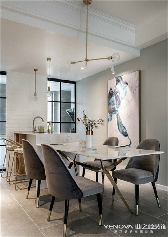 本案为轻奢风格,在其前期硬装上从简,但后期家居及配饰上极为考究,精致的品味,情调的生活。低调却富有质感的镜面黄玫瑰金属元素,勾勒出典雅的轻奢生活空间。
