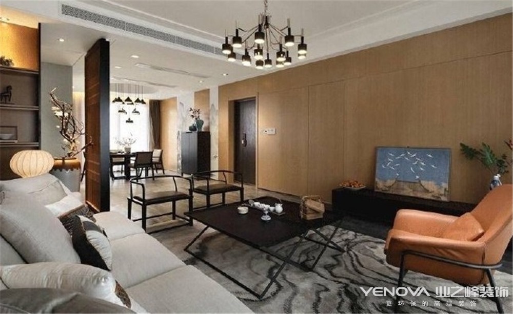 本案为新中式设计风格,新中式设计风格区别于古典中式,后者直接把中式传统的纹样家具运用于空间中,而新中式则不同,它是把中式传统元素经过现代设计加工之后运用的设计风格,新中式是兼并现代极简的形制与东方文化的精髓,在现代与传统中提纯,赋予室内新的生命力。