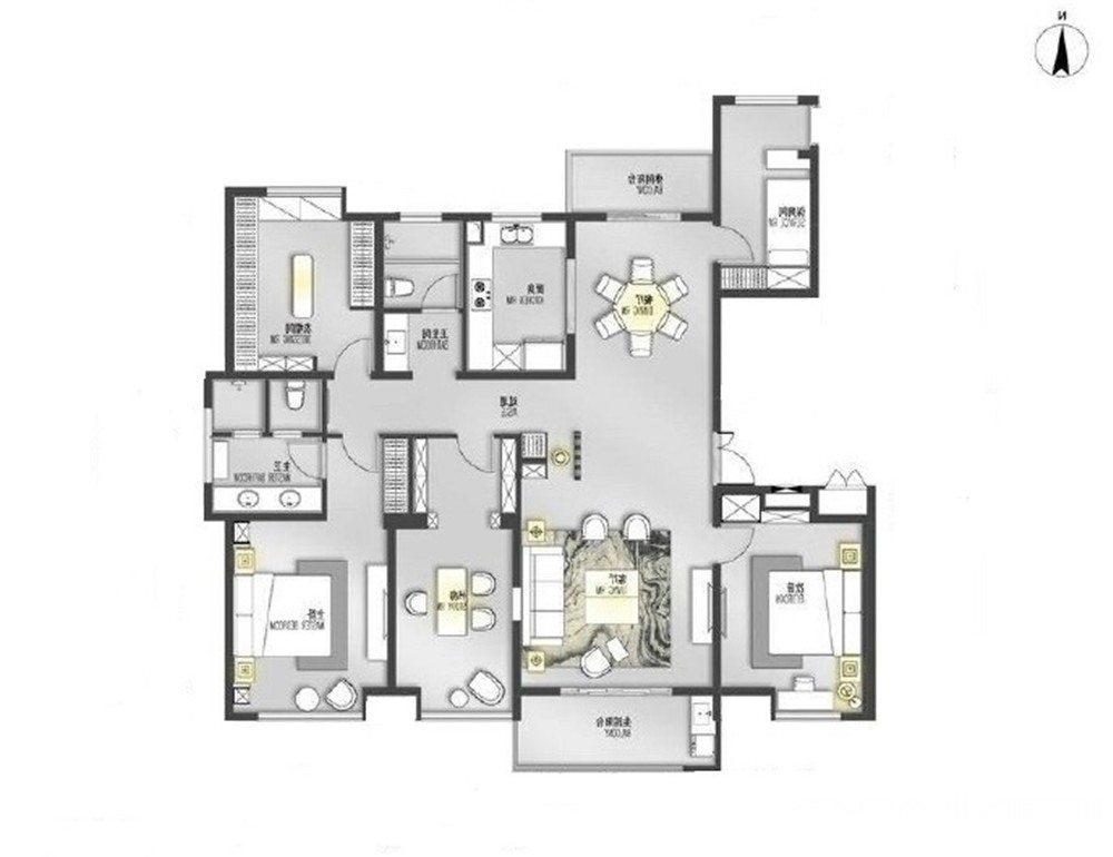 小区:阳光揽胜 面积:209㎡ 户型:四居 风格:新中式风格