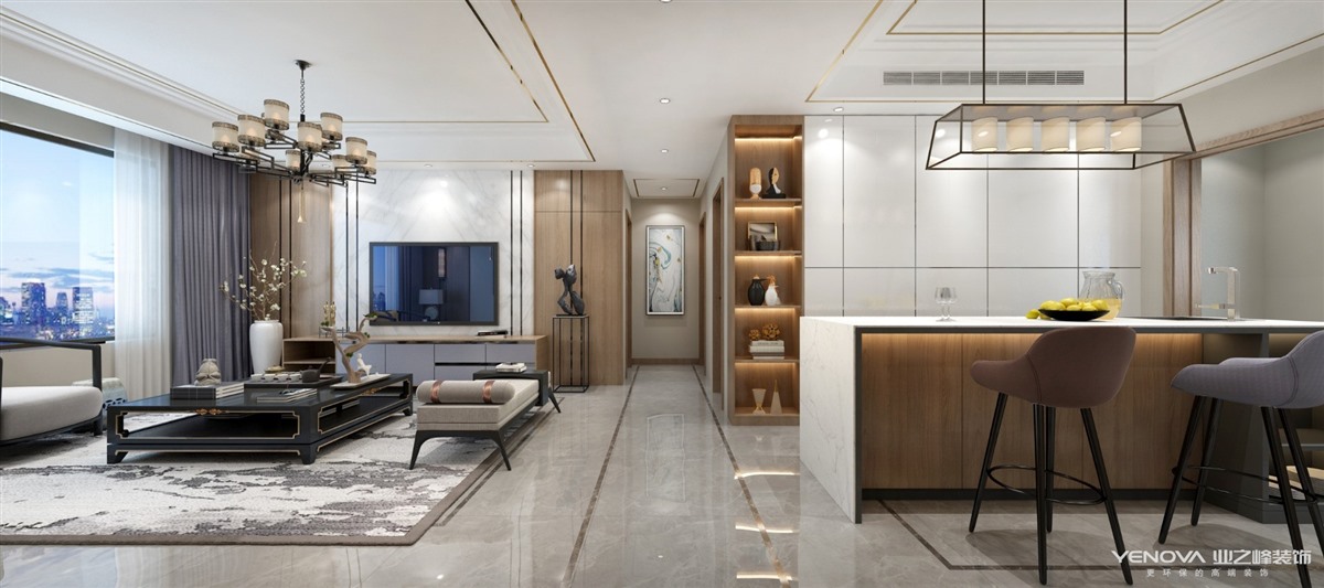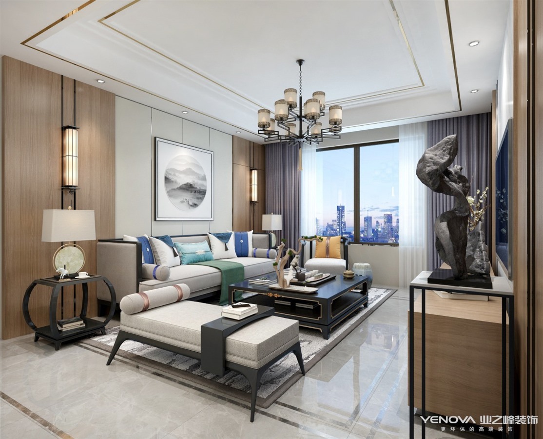 小区:融创中心 面积:90㎡ 户型:三居 风格:新中式风格