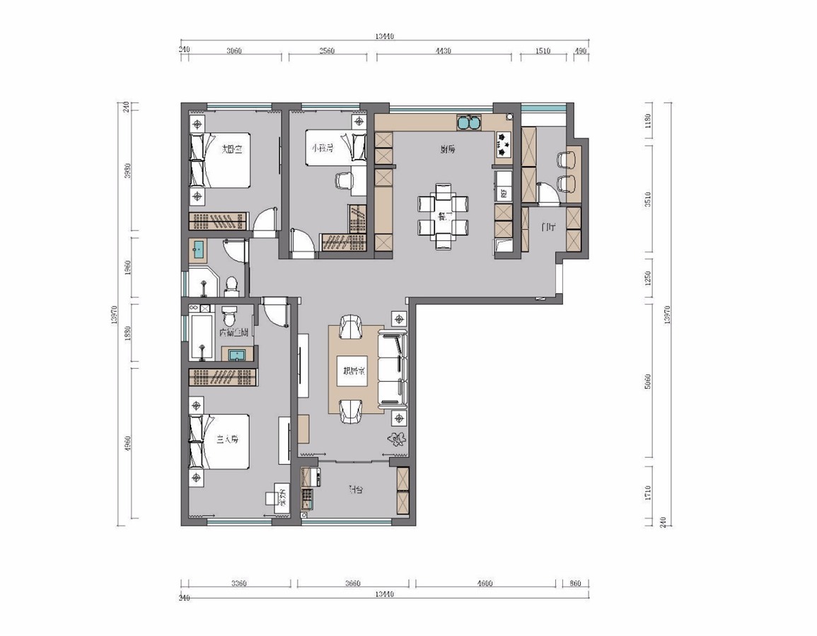 小区:泰宏阳光和苑 面积:160㎡ 户型:四居 风格:现代简约风格