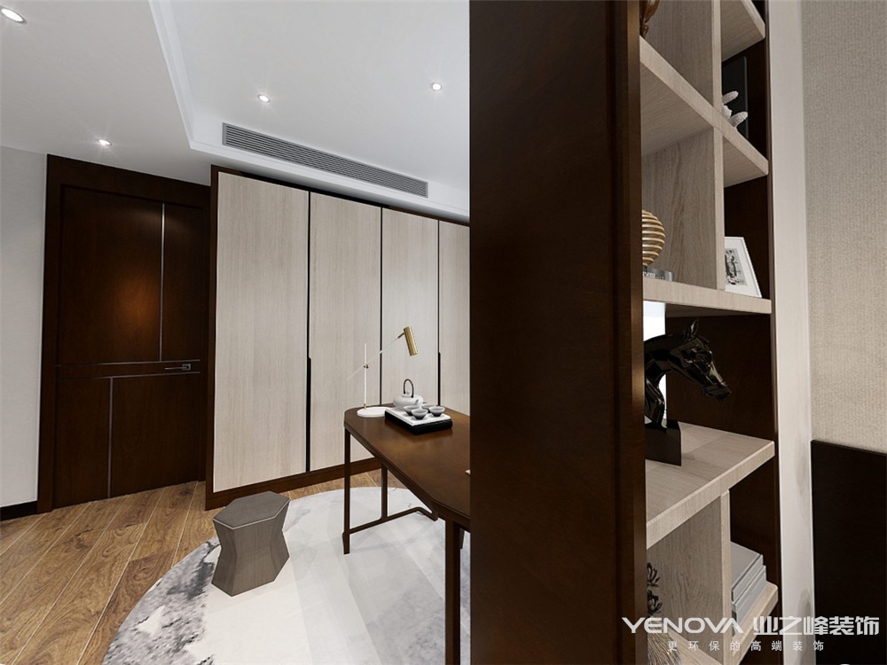 业主比较喜欢简单,希望装修风格不要太复杂,但又不显得空洞,整体效果还是要一点中式的感觉,所以设计师综合了业主的想法,将此案例定义为现代中式风格。此案例是两套小户型打通的结构,小孩的婚房,以后的三口之家,父母可能偶尔会过来住,两套小户型打通的结构,所以整体设计思路是根据小孩的想法,父母提出意见。将入户定在有玄关的这一个户型,独立的鞋柜区域,不影响客餐厅的整体效果。 拆掉原有的客餐厅墙体,原始的两个空间成为现在宽敞、通透的客餐厅;此户型总共4个房间,主卧改为套间(书房与衣帽间一体),卧室与书房之间特意设计了镂空书架隔断,增加了书柜功能,两个空间动静分明,又不分开;原始厨房不满足基本生活需求,现将生活小阳台改为厨房区域,整个厨房空间通透、明亮,也增加了功能需求;考虑以后有小孩,保留了两个小孩房间,父母过来住也比较方便;原始另一个厨房改为了生活储物间,次卫干湿分区,与洗衣机烘干机一体。大阳台为后期现浇区域,仅作为观赏区域。在设计中融入不同元素,简约手法创造出舒适、实用的居住空间。充分利用外阳台,改造为休息区、健身区。整体的色彩运用木纹色的家具及现代感极强的灰调瓷砖和镂空花格以及中式元素