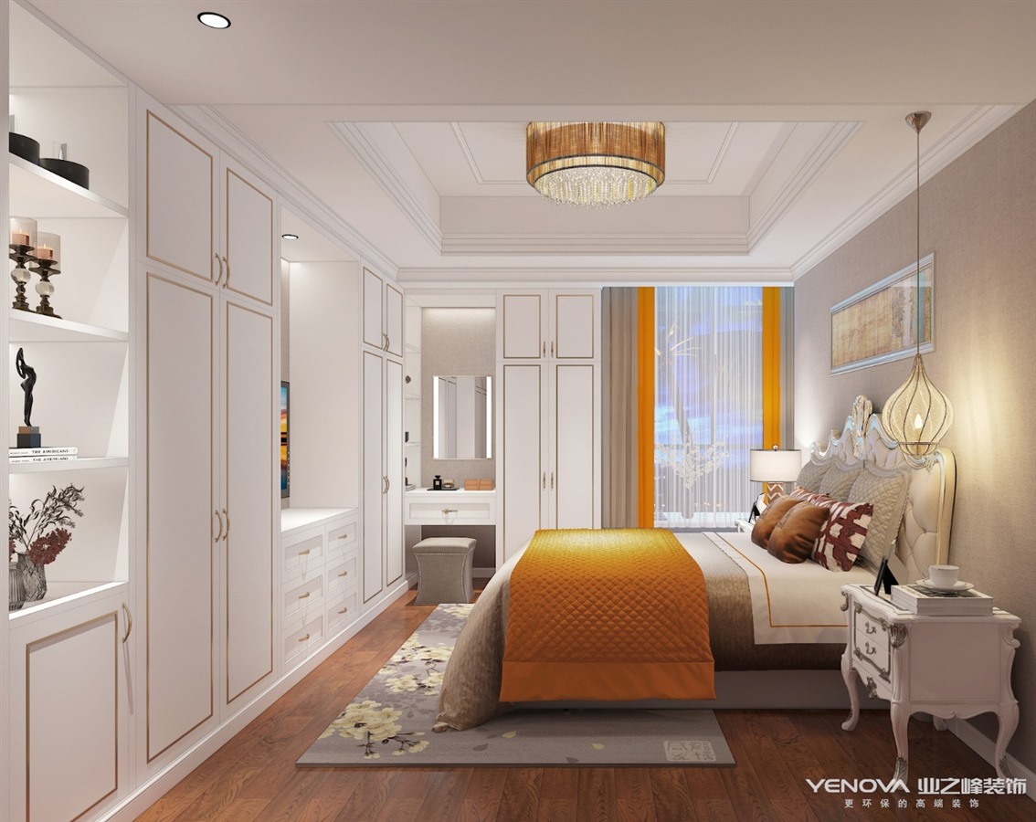 简约欧式更注重卧室的功能和实用性,但保留了欧洲贵族的高贵气质,卧室空间描金的家具,或有略带深沉的咖色,或是跳动的亮黄色,都无疑是简欧轻奢的元素。