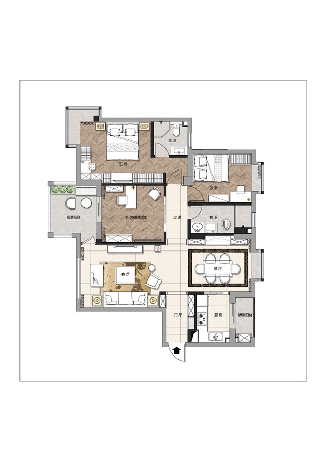 123㎡三居简欧风格同安家园