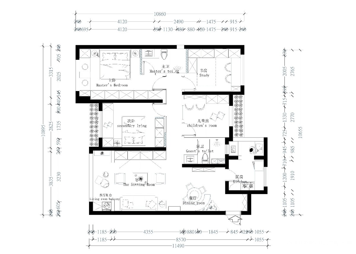 小区:龙湖香醍国际社区 面积:130㎡ 户型:平层 风格:新中式风格
