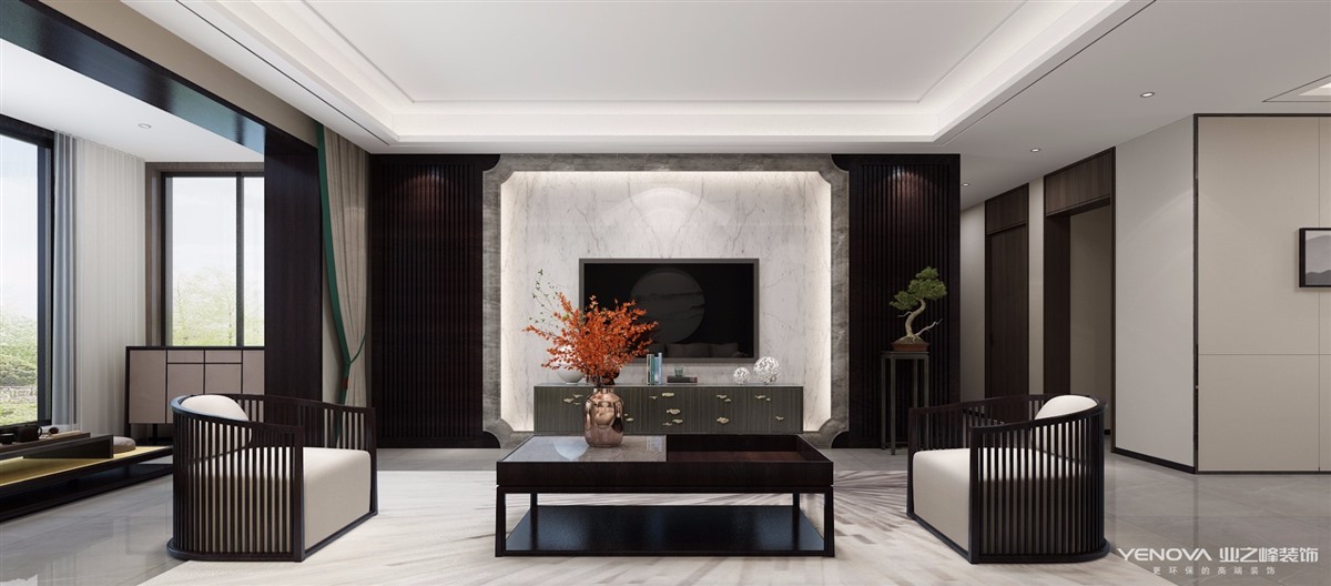 本案为新中式装饰但并不是传统文化的复古装修,而是现代的装修风格中融入古典元素。它不是“1+1=2”的简单堆砌。而是设计师根据经验、驾驭设计元素的能力以及所面对的业主的深度分析后得出的一套“量身定制”的方案。