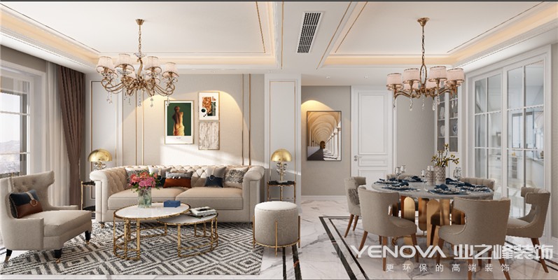 设计说明:“轻奢软装设计风格”的个性化可以体现得很具体,比如牛奶咖啡:牛奶咖啡作为非常中性的颜色非常适合轻奢的表现,如茶镜,棕色门板,牛奶咖啡色墙面漆。此户型设计设为户主现代轻奢风格虽也是现代风格一种,但是与传统的现代风格不同的是,现代轻奢在色彩运用上面对比鲜明。常用高级黑与高级灰做为表现,给空间一种利落感觉。并且还会加上明度比较高的驼色、象牙白等等,为居室呈现出一种温馨大气、时尚高雅范儿。 一般选择现代轻奢风格的客厅比例都比较宽敞,为了使空间利用率最大化。装修的时候可以选择将周围两面墙设计成落地玻璃窗,在视觉上看起来空间很宽敞,并且采光效果也很好。而客厅家具方面,建议采用灰色调以及金属元素的点缀,营造出沉稳却不失时尚的氛围。至于地面的装修,可以选择脚感十分舒适的木地板来装饰,使得整个客厅简约舒适中透露着轻奢的感觉。