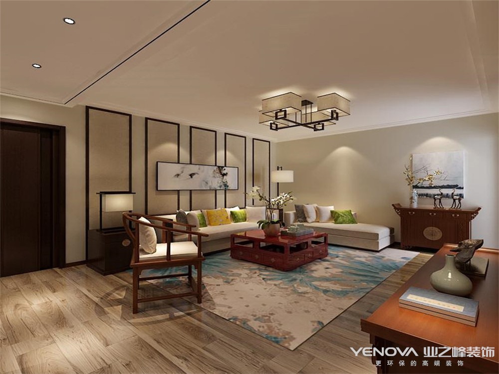 本案例针对当代年轻白领将风格定位为新中式风格,新中式没有传统中式风格的固有的实木制品繁琐的维护工序添加了让人更加舒适生活的布艺元素,既方便了日常打理,又贴近了日常生活。
