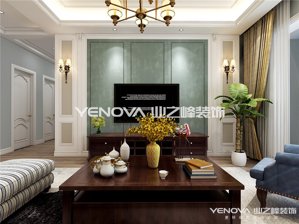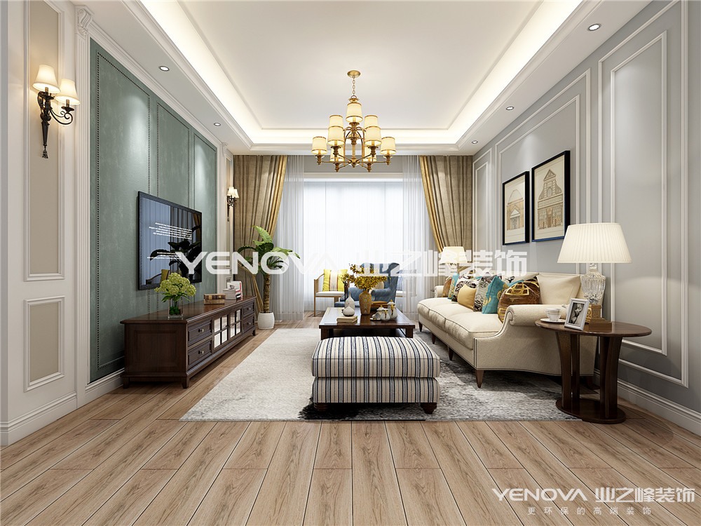 客厅作为待客区域,一般要求简洁明快,同时装修较其它空间要更明快光鲜,通常使用大量的石材和木饰面装饰;美式喜欢有历史感的东西,这不仅反映在软装摆件上对仿古艺术品的喜爱,同时也反映在装修上对各种仿古墙地砖、石材的偏爱和对各种仿旧工艺的追求上。总体而言,美式风格的客厅是宽敞而富有历史气息的。