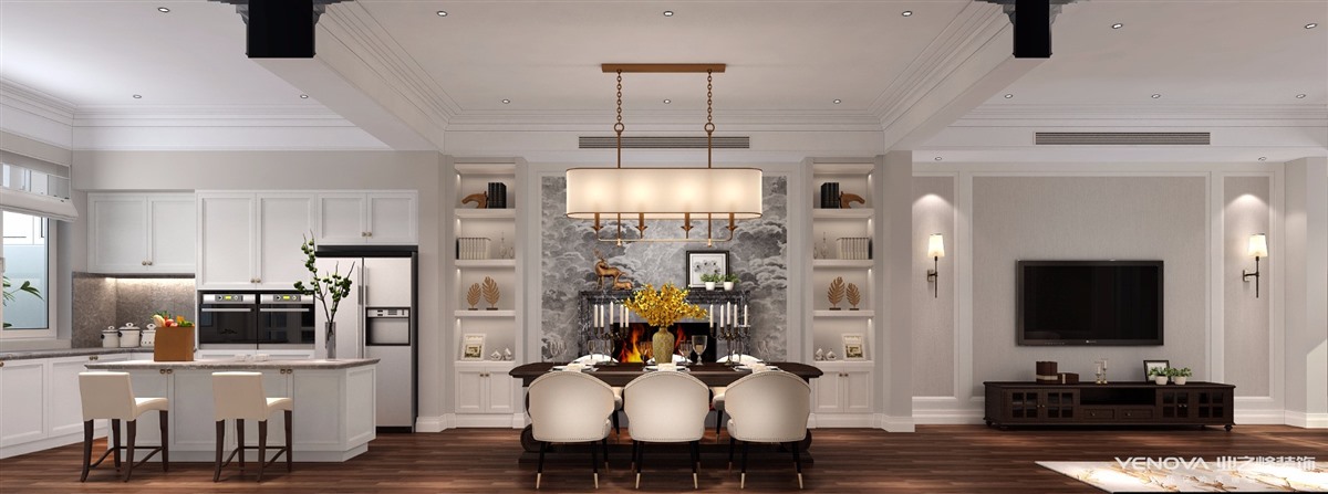 设计说明 美式家居风格的这些元素也正好迎合了时下的文化资产者对生活方式的需求,即:有文化感、有贵气感,还不能缺乏自在感与情调感。