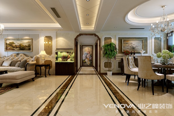 以及璀璨的吊灯既赋予空间奢华大气的韵味,也装点出空间立体的美感。线条优美的欧式家私, 体现了主人对高品质生活的追求
