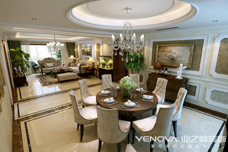 本案主人公为一对中年夫妇 长时间在欧洲生活,所以风格定位欧式 其中圆形的餐厅吊顶