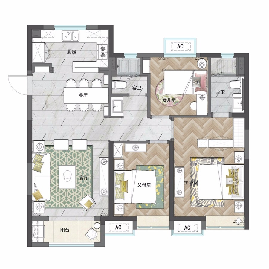 小区:鑫苑世家 面积:133㎡ 户型:三居 风格:现代简约风格