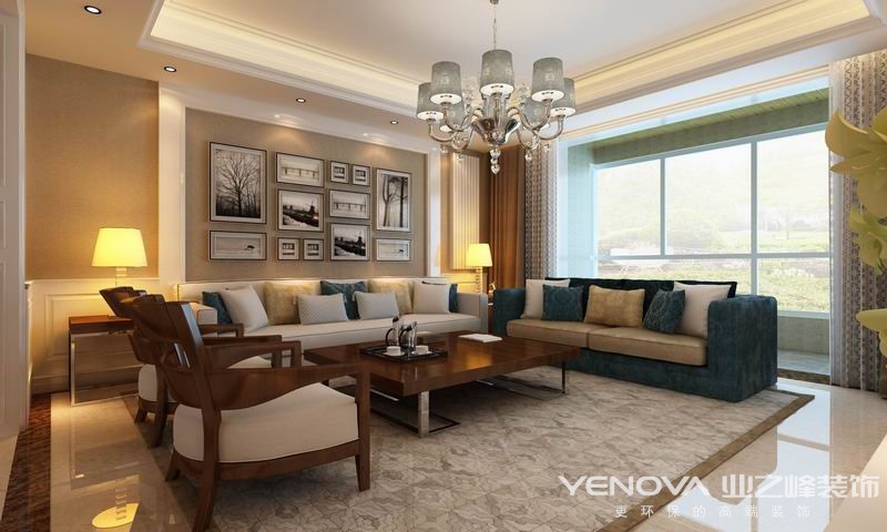 混搭是现在家居装修中一种新型的装修理念,比如如有的人喜欢简约风格,与此同时,他又非常喜欢欧式风格,他就可以在家居的设计之中将简约以及地欧式两者相结合来对家进行装修设计。本案设计中将欧式与现代的设计同时融入其中,低调大气的感觉从中流露,现代沙发与欧式的护墙板的结合最为显眼,蓝色的沙发、木质的家具、给人完美的视觉盛宴,打造出了经典居家空间。