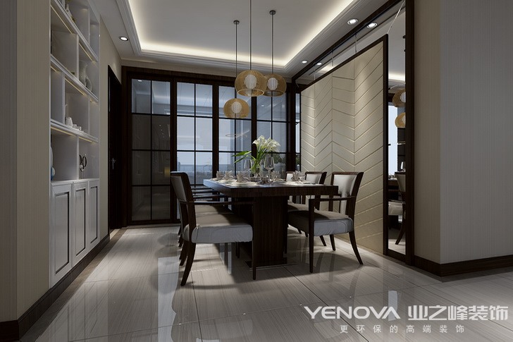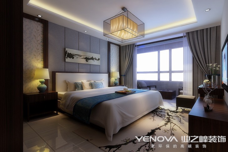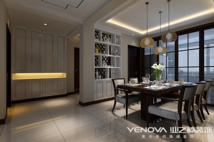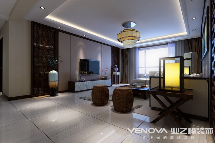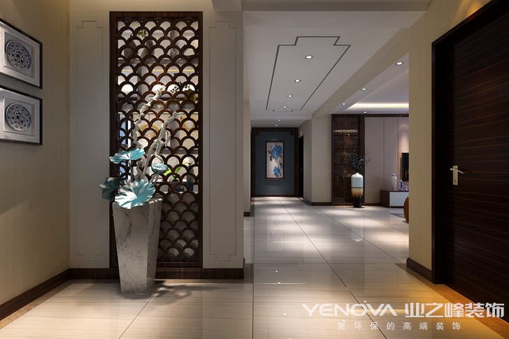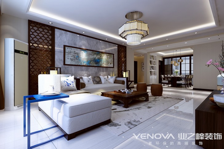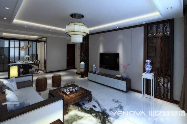 中国风并非完全意义上的复古明清,而是通过中式风格的特征,是对中国当代文化充分理解基础上的当代设计。本案新中式风格不是纯粹的元素堆砌,而是通过对传统文化的认识,将现代元素和传统元素结合在一起。室内多采用对称式的布局方式,格调高雅,造型简朴优美,色彩浓重而成熟传统室内陈设包括字画、盆景、 瓷器、古玩、屏风、博古架等,追求一种修身养性的生活境界入户玄关和博古架结合起来区分在需要隔绝视线的地方,则使用中式的屏风或窗棂,通过这种新的分隔方式,使住宅就展现出中式家居的层次之美。