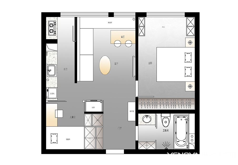小区:犀地 面积:69㎡ 户型:二居 风格:现代简约风格