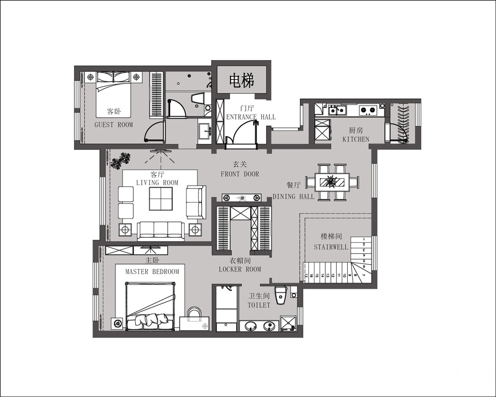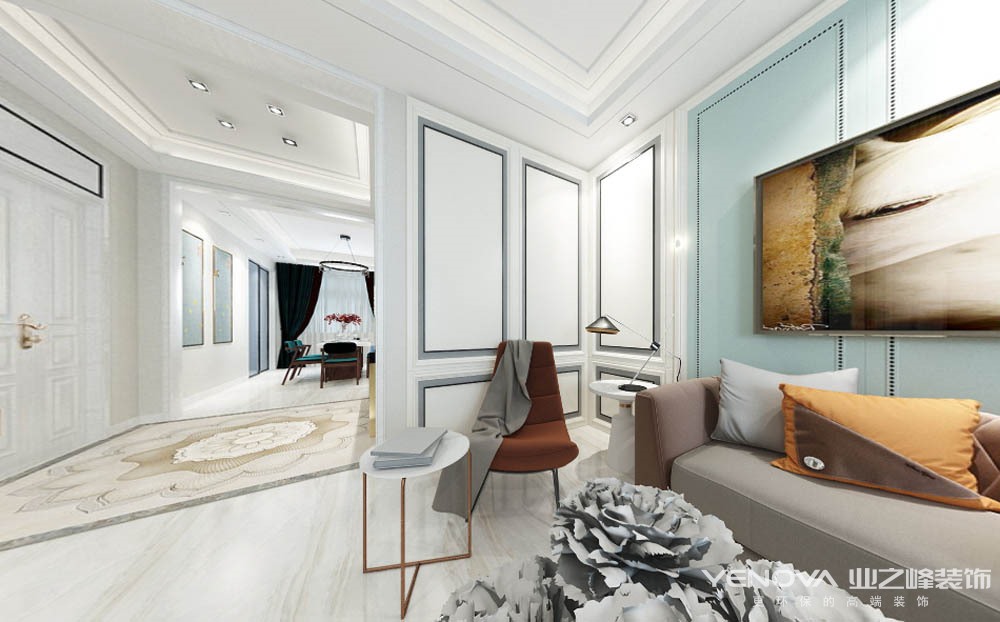 美式轻奢,代表着自由与贵气,低调奢华,进取与传统,以高品质、设计感、舒适、简约为特点,整个空间以白色为基调,内敛、朦胧、低调,烘托出软装的精致和质感