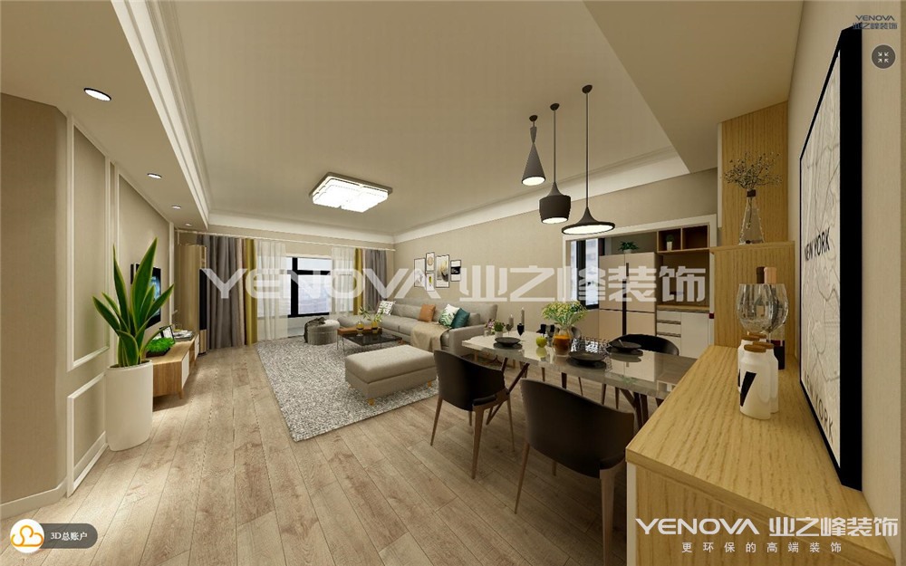 小区:桂花城 面积:140㎡ 户型:三居 风格:现代简约风格